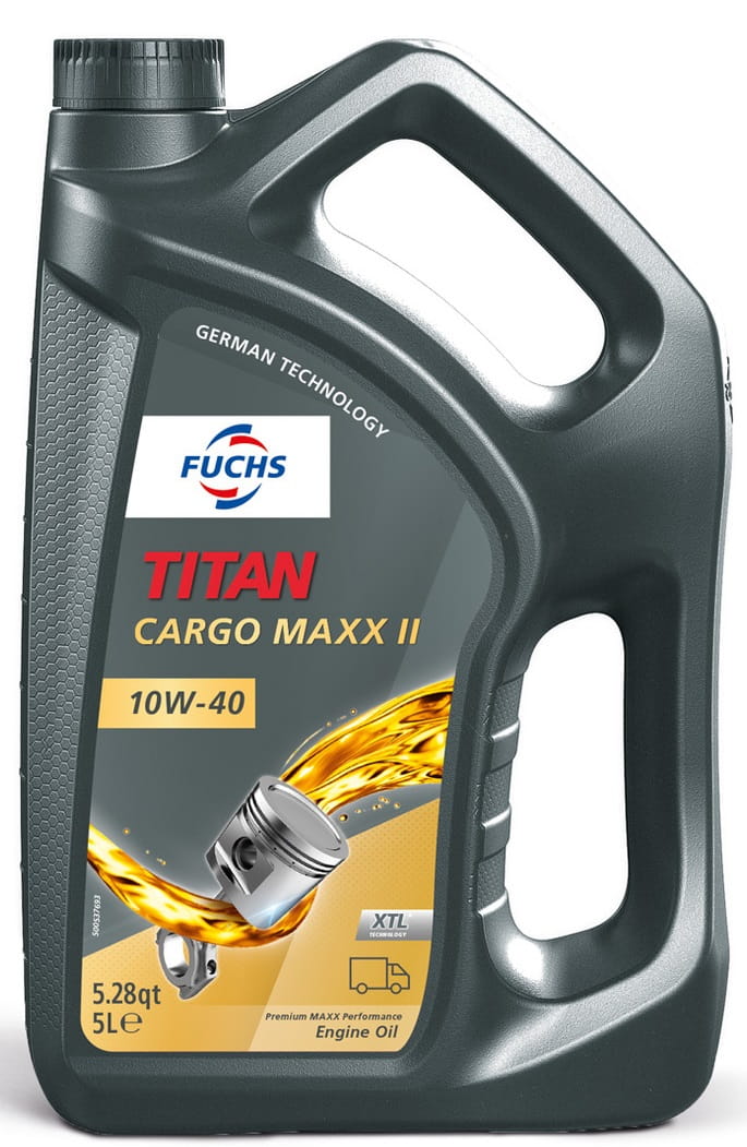 Titan Cargo Maxx 10W40 to najwyższej jakości olej silnikowy opracowany w technologii XTL, dedykowany do wysokoobciążonych silników Diesla - turbodoładowanych i z nowoczesnymi systemami oczyszczania spalin. Olej Fuchs Titan Cargo Maxx 10W40 dzięki innowacyjnej technologii XTL pozwala na wyjątkowo łatwy rozruch w niskich temperaturach otoczenia. Pozwala na maksymalne oszczędności paliwa zachowując swoje parametry przez cały okres pomiędzy wymianami. Jego właściwości umożliwiają zmniejszenie zużycia oleju nawet do 27%. Titan Cargo Maxx 10W40 XTL maksymalnie chroni silnik przed powstawaniem osadów w układzie olejowym, układzie turbodoładowania oraz w systemie wydechowym, chroniąc systemy oczyszczania spalin, co znacznie wpływa na oszczędności w serwisowaniu pojazdu.